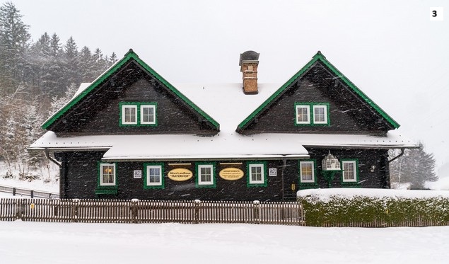 Schigebiet Stuhleck - Spital am Semmering, direkt an der Mittelstation der Vierersesselbahn Berglift Stuhleck. Gemütliches altes Landhaus mit vier Ferienwohnungen, wintersichere, ebene Zufahrt und eigene Parkplätze.